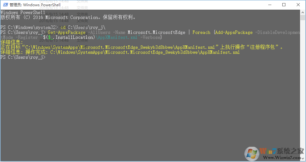 8、在打開的PowerShell窗口中輸入以下內(nèi)容: