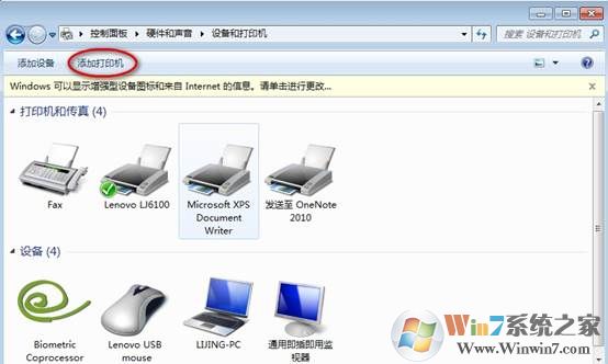 3、點(diǎn)擊“添加打印機(jī)”;