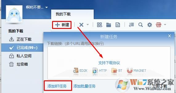 1、打開迅雷,然后點(diǎn)擊“新建”——添加BT任務(wù);