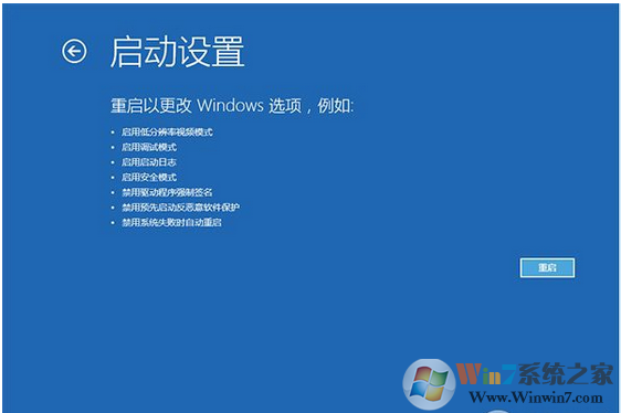 6、這里給出了下次重啟后的主要選項,點擊“重啟”按鈕進行;