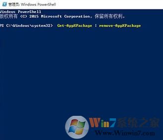 2、打開windows PowerShell 窗口后輸入下面的命令按下回車鍵即可將所有應用一次性卸載掉:Get-AppXPackage | Remove-AppxPackage