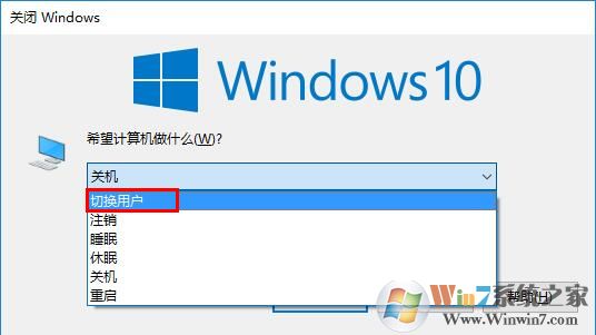 2、此時再同時按下“Alt+F4”組合鍵,屏幕中央會彈出“關閉Windows”窗口,在“希望計算機做什么”下方的下拉菜單中選擇“切換用戶”,并點擊“確定”即可。