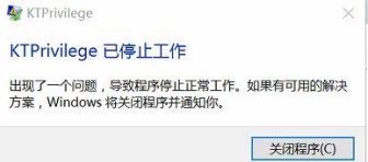 電腦不定時(shí)提示“KTPrivilege已停止工作”報(bào)錯(cuò),如下圖:
