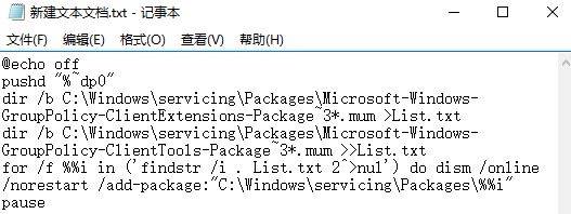 dir /b C:\Windows\servicing\Packages\Microsoft-Windows-GroupPolicy-ClientExtensions-Package~3*.mum >List.txt