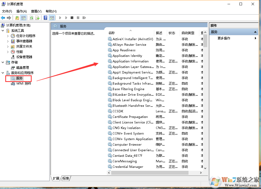 2、選擇“服務和應用程序”,然后雙擊“服務”,我們在右邊的服務列表里面找到“User Manager”,如下圖: