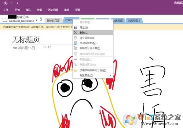 你將看到被你刪除過的筆記分區(qū),在被你刪除的筆記分區(qū)上點擊鼠標右鍵,再點擊刪除,直至刪除回收站里的所有OneNote筆記分區(qū),問題應該就會得到解除了。