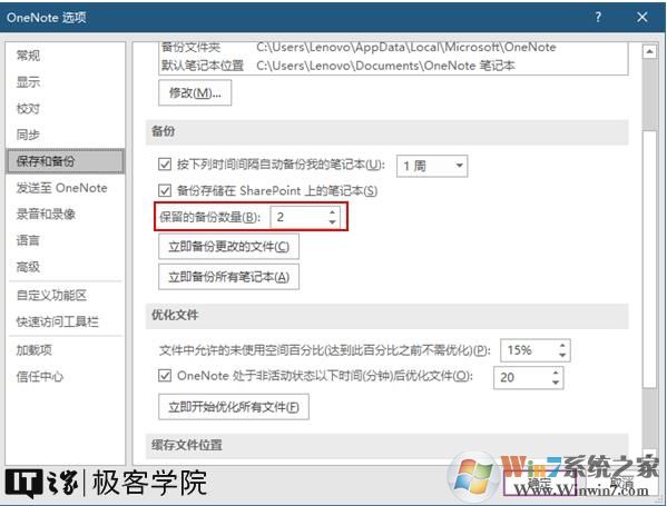 還是來到文件-選項-保存和備份,在備份下,你將看到保存的備份數量設置項,將這個數值設置得小一點即可。