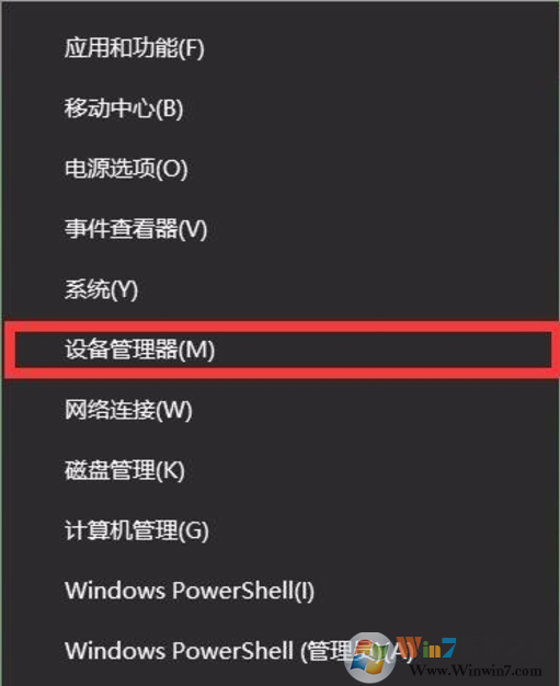 1、按“Windows鍵+X鍵”快捷鍵,選擇“設備管理器”;