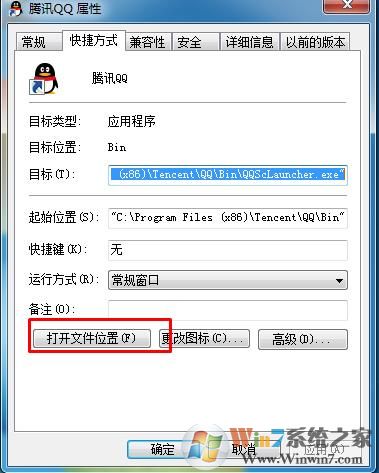 1、右鍵點(diǎn)擊桌面上的QQ圖標(biāo),屬性,然后定位到QQ安裝目錄;