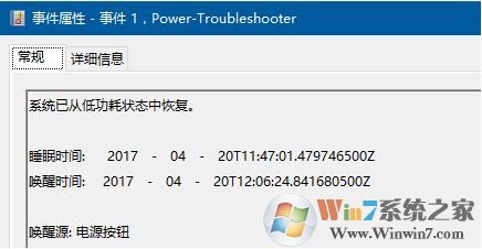 此外,還可以在Windows事件查看器的系統(tǒng)日志里查看每一次喚醒都是由哪個(gè)設(shè)備發(fā)起的。在系統(tǒng)日志里搜索“Power-Troubleshooter”即可,日志格式如下圖: