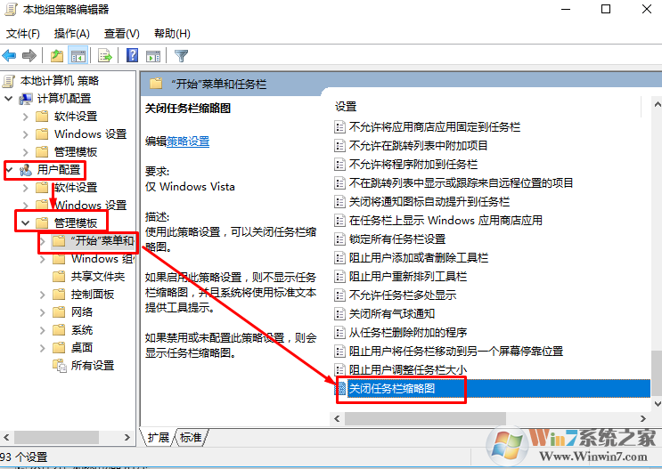 4、在右側(cè)雙擊打開【關(guān)閉任務(wù)欄縮略圖】;
