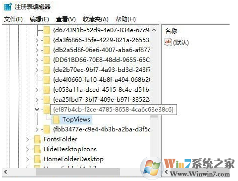 3、展開TopViews 后,將下面的{00000000-0000-0000-0000-000000000000}單擊右www.w10zj.com鍵,選擇 【刪除】將{00000000-0000-0000-0000-000000000000}項(xiàng)刪除;
