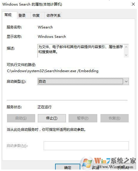 6、將windows Search 服務(wù)的啟動(dòng)類型修改為【自動(dòng)】,然后點(diǎn)擊【應(yīng)用】--【啟動(dòng)】--【確定】即可。