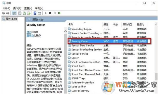 2、在本地服務列表中找到 SecurityCenter 服務 雙擊打開;