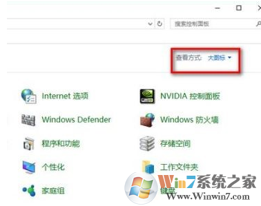 2、打開控制面板后左上角有個查看方式,選擇大圖標;