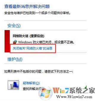 4、在安全菜單里會有網(wǎng)絡防火墻的信息,點擊關閉有關“網(wǎng)絡防火墻”的消息,就不會再有通知!