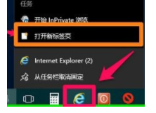 4、此時(shí)我們只需雙擊打開ie 或者在任務(wù)欄上的ie瀏覽器上單擊右鍵,選擇【打開新標(biāo)簽】即可打開設(shè)置后的主頁(yè)。
