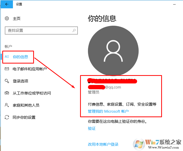 2、選擇賬戶,在你的信息中改用微軟賬戶登錄。