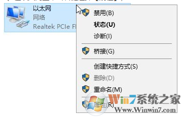 2、在以太網(wǎng)上單擊右鍵選擇【屬性】;