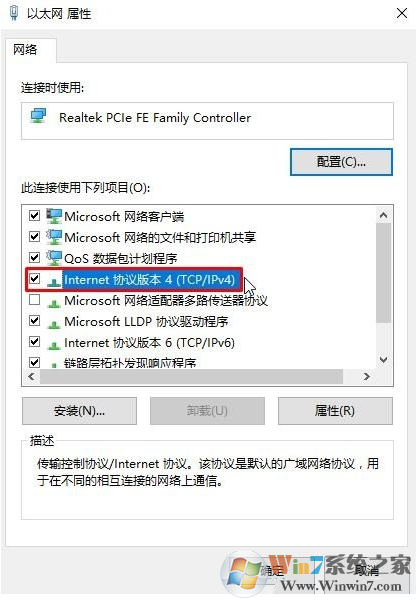 3、在以太網(wǎng)屬性中,雙擊打開【Internet 協(xié)議版本4(TCP/IPv4)】;