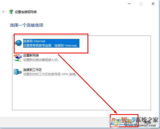 3、選擇連接到Internet,點(diǎn)擊下一步