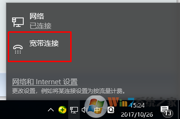 6、下次需要連接寬帶的時(shí)候我們點(diǎn)擊任務(wù)欄右下角網(wǎng)絡(luò)圖標(biāo)就可以看見有一個(gè)寬帶連接了,點(diǎn)擊連接即可。