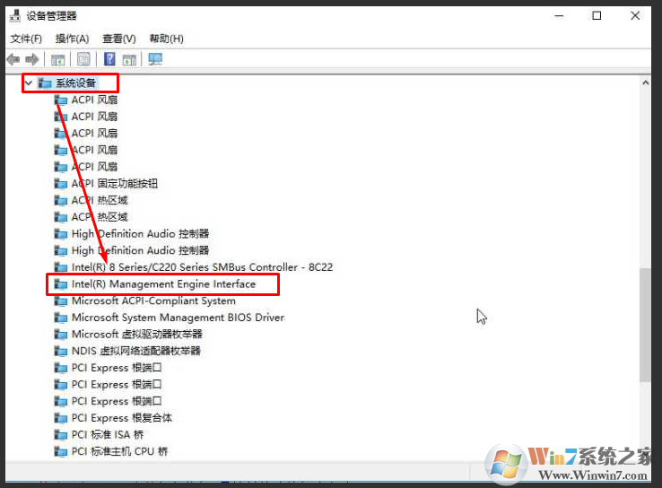 在打開界面中,點擊系統(tǒng)設(shè)備----Intel(R) Management Engine Interface,右鍵選擇卸載,如下圖所示: