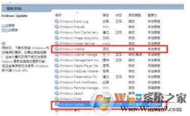 2、打開控制面板之后,找到服務(wù)選項(xiàng),在打開的服務(wù)中,找到windows update和windows installer,查看啟動狀態(tài),如果沒有啟動,就將其啟動即可。
