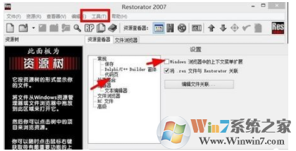 3、打開Restorator 2007配置-外殼整合-去掉Win上下文管連,最后確定,在關(guān)閉該軟件;