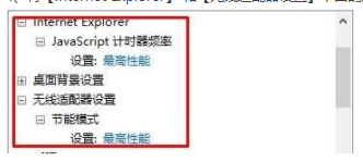 4、將【Internet Explorer】 和【無線適配器設(shè)置】下面的選項(xiàng)設(shè)置為“最高性能”,點(diǎn)擊確定即可。