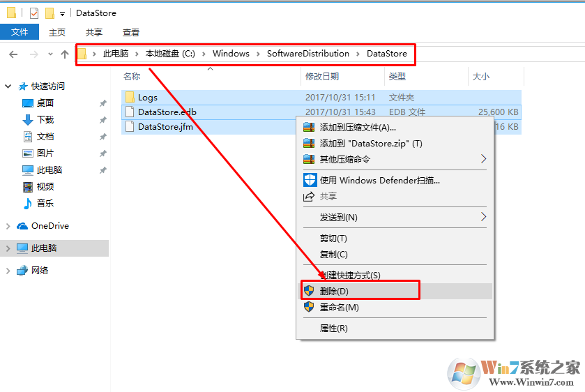 在C:\Windows\SoftwareDistribution下刪除DataStore文件夾下的內(nèi)容和Download文件夾下的內(nèi)容。