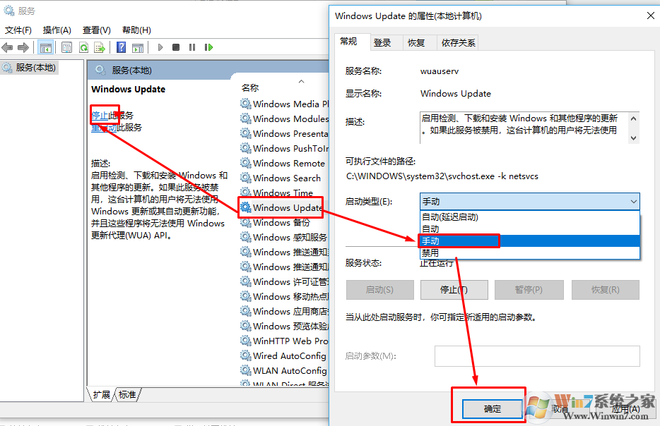 3、然后單擊“停止”,關(guān)閉該服務(wù),再將啟動(dòng)類型改為“手動(dòng)”