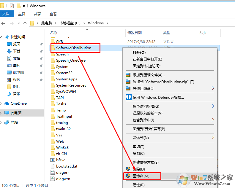 4、然后重命名C:\Windows\SoftwareDistribution文件夾為SDfolder 。