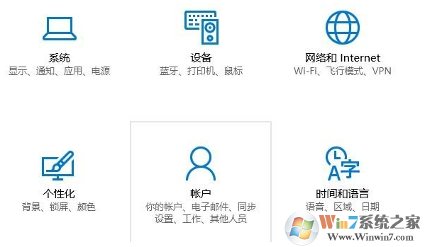1、按下windows + i 組合鍵打開設(shè)置界面,然后在windows設(shè)置界面點擊帳戶;