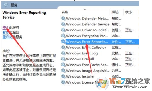 五、然后找到【W(wǎng)indows Error Reporting Service】服務,同樣將該服務停用,設置完成后重啟電腦即可解決登錄時閃爍的問題。