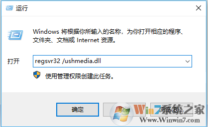 4、按下win+R打開運(yùn)行,輸入:regsvr32 /ushmedia.dll 按下回車鍵(恢復(fù)視頻預(yù)覽功能的命令:regsvr32shmedia.dll);