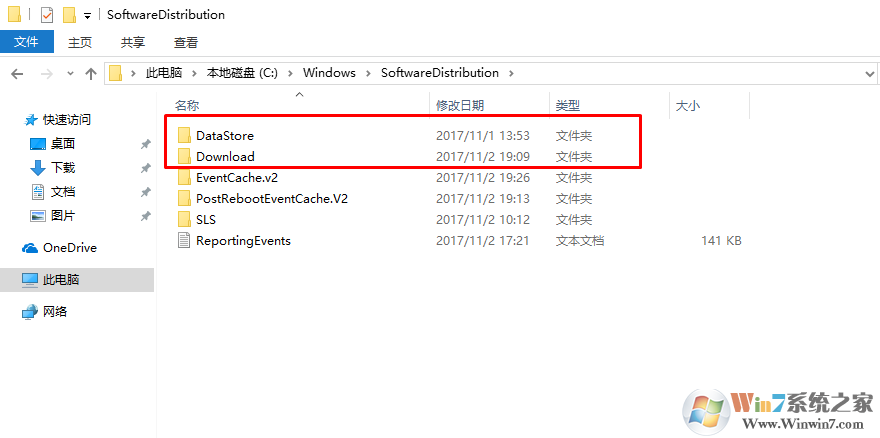 在C:\Windows\SoftwareDistribution下刪除DataStore文件夾下的內(nèi)容和Download文件夾下的內(nèi)容