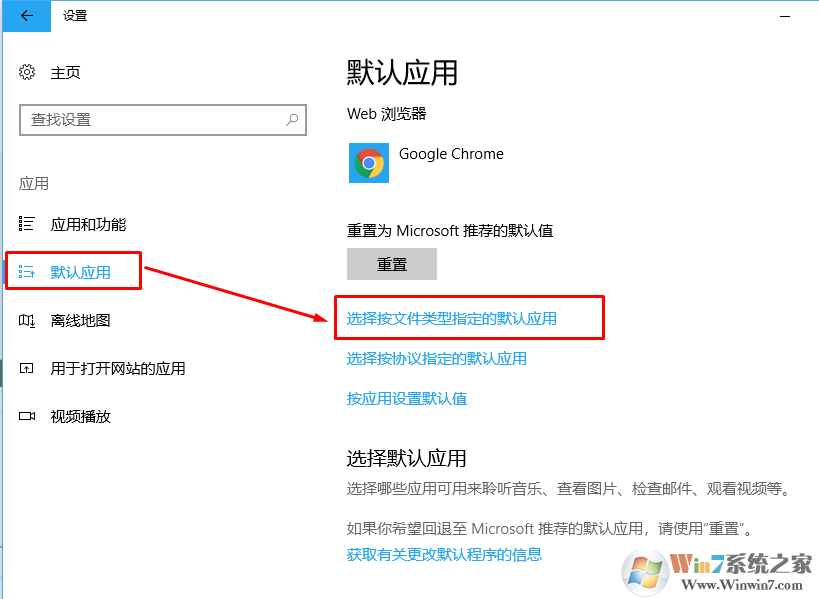 3、選擇默認(rèn)應(yīng)用----選擇按文件類(lèi)型指定的默認(rèn)應(yīng)用。