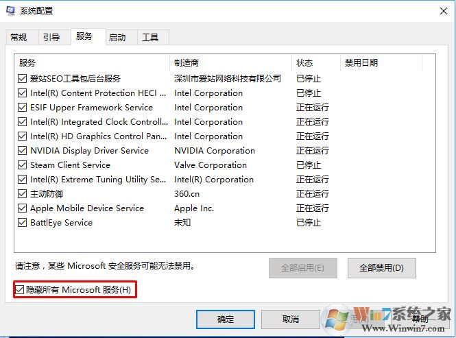 - 標記隱藏所有Microsoft服務(wù)復(fù)選框。