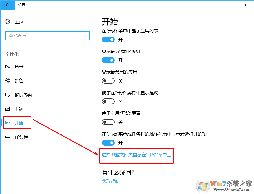 3、在開(kāi)始選項(xiàng)下找到將哪些文件顯示在開(kāi)始菜單上。