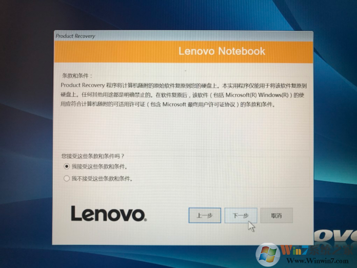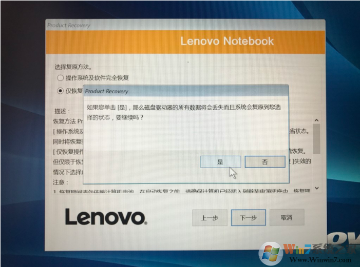 4、該鏡像由于要?jiǎng)?chuàng)建聯(lián)想一鍵恢復(fù)所需要的分區(qū),所以會(huì)刪除該硬盤所有的分區(qū),重新建立分區(qū),所以該硬盤的數(shù)據(jù)會(huì)全部丟失。所以在重做之前建議備份自己所需要的文件以及資料。