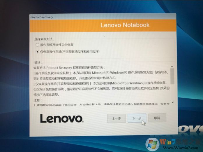 7、選擇“僅恢復(fù)操作系統(tǒng)”,然后點(diǎn)擊下一步。