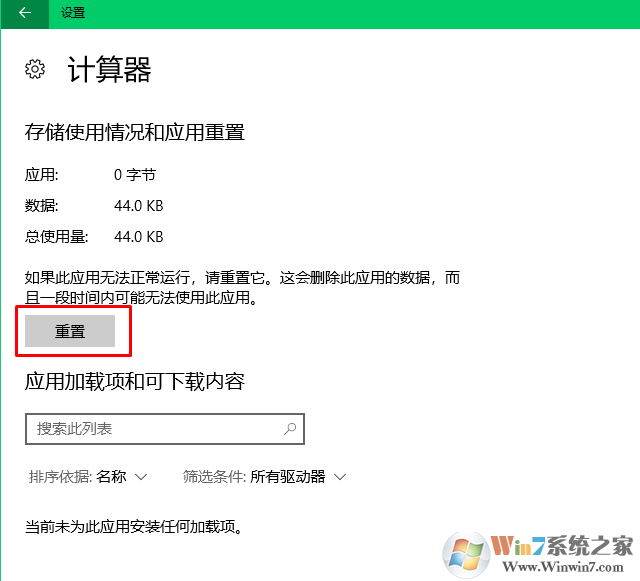 - 點擊高級選項鏈接打開存儲使用和應(yīng)用程序重置頁面。
