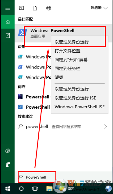 - 右鍵單擊Windows PowerShell,然后選擇以管理員身份運行。