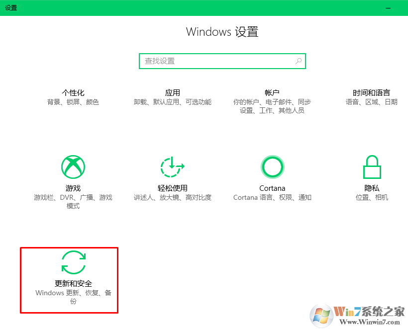 1. 從開始菜單訪問設(shè)置,然后單擊更新和安全圖標。
