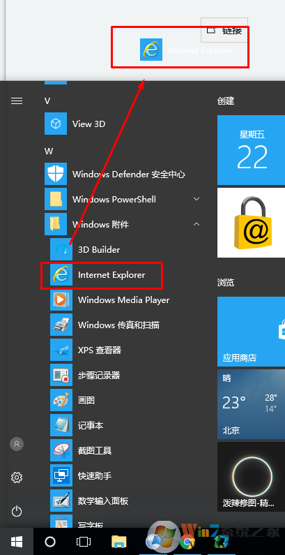 3、我們就可以看見IE圖標(biāo)了,直接單機(jī)鼠標(biāo)左鍵長按,然后拖動(dòng)到桌面即可。