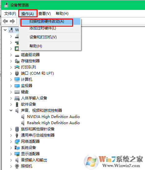 5、按照步驟1中的說明重新打開“設(shè)備管理器”,然后單擊屏幕頂部的“ 操作”選項(xiàng)卡。