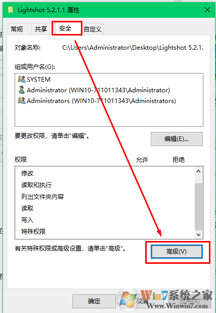 3、點(diǎn)擊高級并找到所有者。