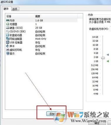 2、在虛擬機(jī)設(shè)置里面選擇添加,如下圖: