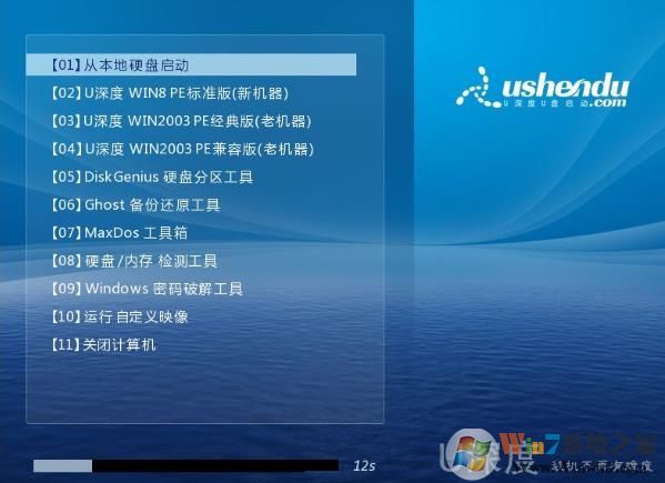 12、重啟啟動(dòng)后,就順利從U盤啟動(dòng)了,如下圖是U盤啟動(dòng)盤菜單界面,如果是別的啟動(dòng)盤那么會(huì)顯示相應(yīng)的畫面。